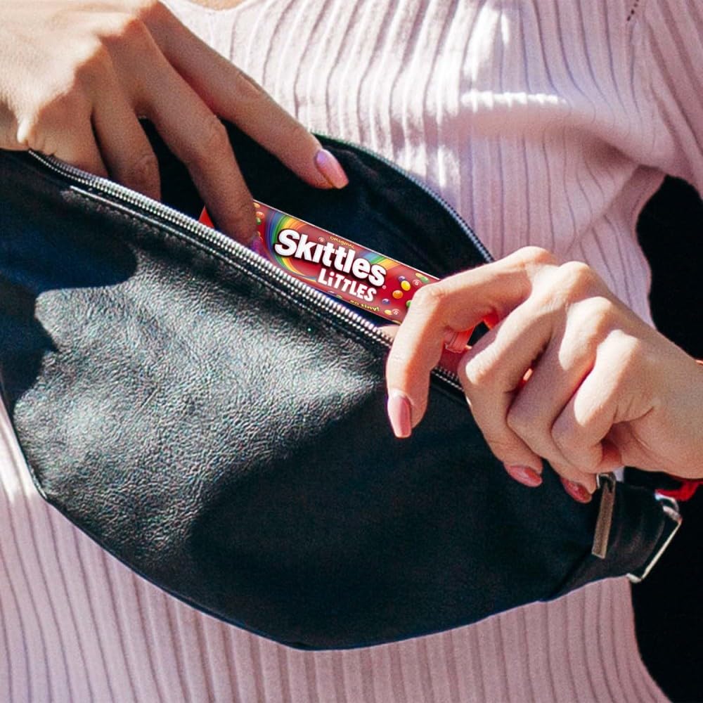 What can get smaller, but still hold a huge punch of fruity flavor? SKITTLES Littles! SKITTLES Little is a mini twist to the classic 'Taste the Rainbow' chewy candy. Pop the top of this candy tube to enjoy the strawberry, lemon, lime, grape, and orange assorted flavors SKITTLES original is loved for.