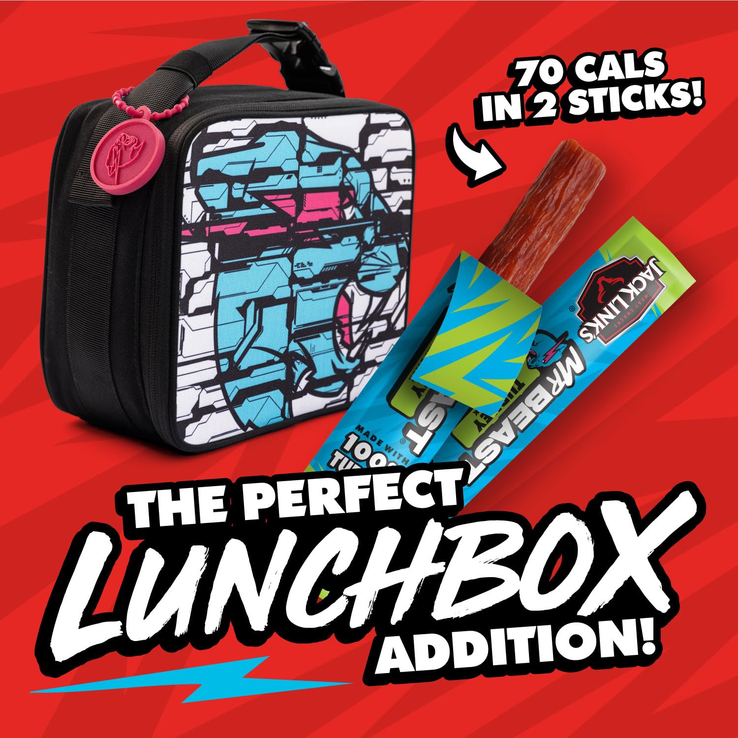 Mr Beast x Jack Link's Original Mini Turkey Sticks: We start with 100% turkey and add our signature blend of spices and herbs for a bold flavor. Plus, with 8g of protein per serving, Jack Link's Mini Turkey Sticks are the protein snack you need to help you power thru your day. They're portable, too, and go where you go: One-handed snacking is the way to go when you and your family are on the move.
