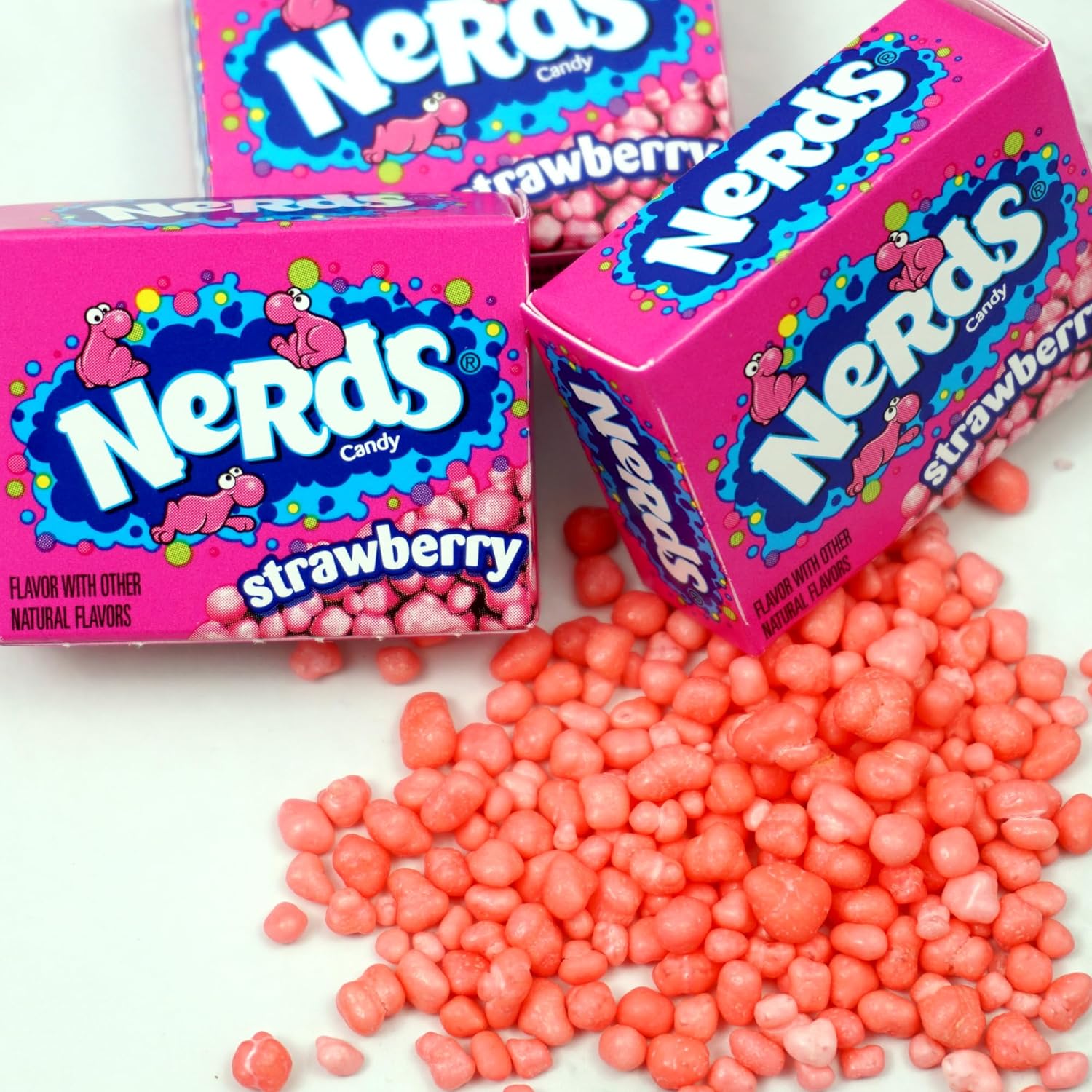 Delicious Strawberry Flavor: Enjoy the irresistible taste of Nerds candy in a delightful strawberry flavor. Perfect for satisfying your sweet tooth Treat Size Boxes: Conveniently packaged in treat size boxes, these candy nerds are perfect for snacking, sharing, or adding a sweet touch to any occasion.
