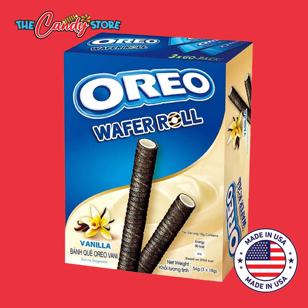 You can now enjoy Oreo in a wafer form! Each box of Oreo Wafer Rolls contains 3 foiled wrapped packs with 3 crispy and crunchy wafer rolls filled with a vanilla cream. They make the perfect accompliment to coffee, tea, or even ice cream! Display these Oreo Wafer Rolls next to your other biscuit and Oreo products.